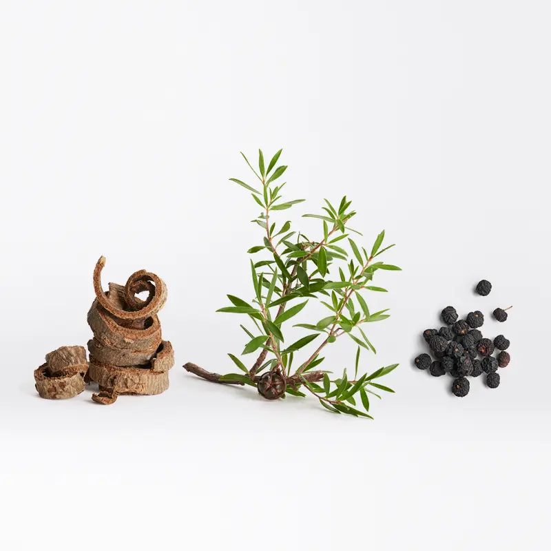 Ein Extrakt aus schwarzem Pfeffer, Manukaöl und Magnolienrinde sorgt für ein frisches Kopfhautgefühl, da es die übermäßige Produktion einer fettigen Kopfhaut reduziert. Lärchenschwammextrakt verengt als natürliches und effektives Antitranspirant die Schweißdrüsen ohne die Haut auszutrocknen.
